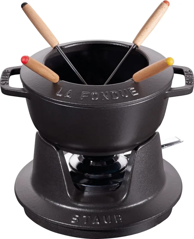 Das Fondueset in verschiedenen Grössen ist geeignet für Schokolade-, Käse-, Fleischfondue oder die chinesische Variante. Das Rechaud kann für eine platzsparende Aufbewahrung umgekehrt in das Caquelon gesetzt werden. Langlebig, pflegeleicht und kratzfest. Optimale Wärmespeicherung und -verteilung. Bestehend aus Caquelon, Antispritzring, Rechaud, Gabeln und einem Brenner. Handwäsche empfohlen.