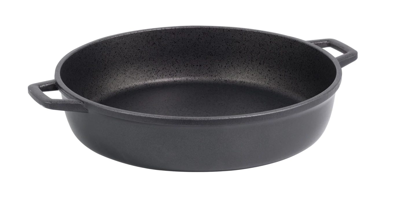 Bratentopf mit hochwertiger Antihaftbeschichtung. Ideal zum Garen und Schmoren. Nur mit Wärmeschutz benutzen, da sich die Griffe erhitzen. Für alle Herdarten, inklusive Induktion geeignet. Nicht spülmaschinengeeignet.