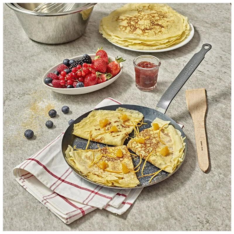 Pfanne mit niedrigem Rand, für das einfache Wenden von Crêpes, ideal zum Backen von zart-krustigen traditionellen Crêpes.