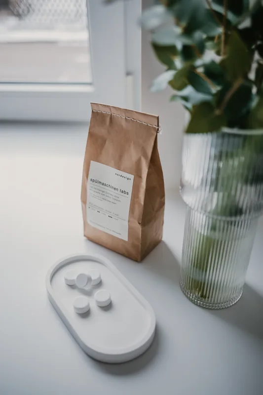 Umweltbewusst und effektiv: Mini Spülmaschinen-Tabs ohne Mikroplastik für eine saubere Zukunft. Unsere Tabs überzeugen nicht nur durch ihre hohe Reinigungsleistung, sondern auch durch unser innovatives Gesamtkonzept. Die 120 Tabs sind unverpackt (keine Folie) und erreichen Dich in einem voll-recycelbaren Beutel aus Papier. Wir verzichten somit komplett auf Verpackungen aus Kunststoff und vermeiden schlechten Verpackungsmüll. Das Aroma Wild Lemongrass verleiht dem Geschirr nicht nur eine saubere, sondern auch eine frische Note. Die natürliche Mischung aus Kräutern und frischen Elementen sorgt für ein angenehmes Dufterlebnis beim Ausräumen der Spülmaschine, ohne aufdringlich zu wirken. Die Herstellung in Deutschland gewährleistet zudem einen geringen CO2-Verbrauch in der Lieferkette. 1 Tab = leichte Verschmutzung 2 Tabs = mäßig bis mittlere Verschmutzung 3 Tabs = starke Verschmutzung Anwendung: 1-3 Tabs pro Spülgang in die Dosierkammer Deiner Spülmaschine legen. Für ein optimales Spülergebnis stelle Deine Spülmaschine auf die Wasserhärte Deines Wohnorts ein. Kristallglas, Aluminiumgeschirr sowie Holzteile nicht in der Maschine waschen. Packung ist aus Papier, daher trocken lagern. Inhaltsstoffe: 15% Bleichmittel auf Sauerstoffbasis, < 5% Polycarboxylate, Phosphonate, Enzyme, Duftstoffe