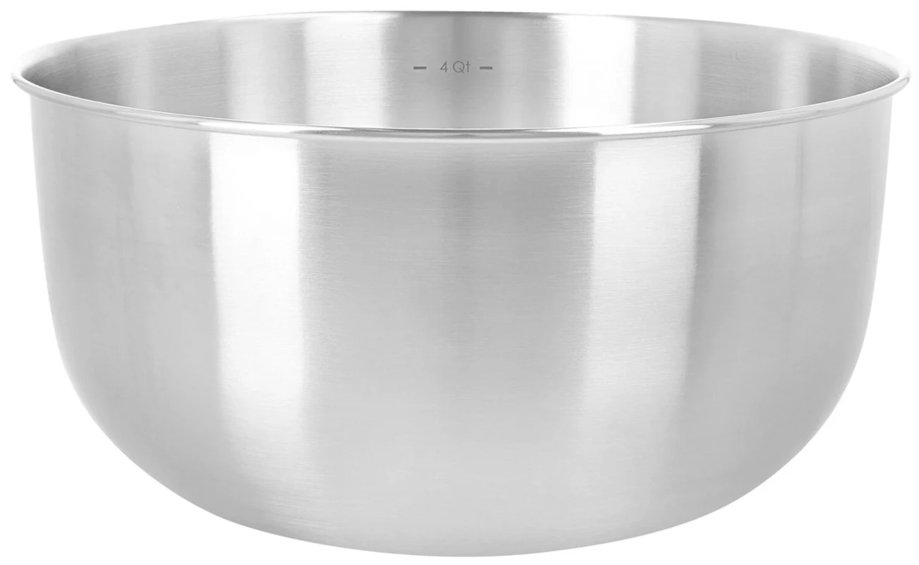 Ob Pfannkuchenteig oder Schlagsahne, Pizzateig, Hackfleisch mit Semmelbröseln und frischen Kräutern oder Obstsalat eine robuste, leicht zu reinigende Rührschüssel ist im Alltag unverzichtbar. Zwei Schüsseln sind noch praktischer, zum Beispiel, wenn die zweite Schüssel bereits mit einer Masse im Kühlschrank steht, die noch fest werden muss. Deshalb freuen wir uns, Ihnen dieses robuste Duo hochwertiger Edelstahlschüsseln mit 2,5 und 4 Litern Fassungsvermögen (20 und 24 cm Durchmesser) präsentieren zu können. Ideal für müheloses Arbeiten und unübertroffen in ihrer schlichten Eleganz. Zudem lassen sie sich platzsparend ineinander stapeln.