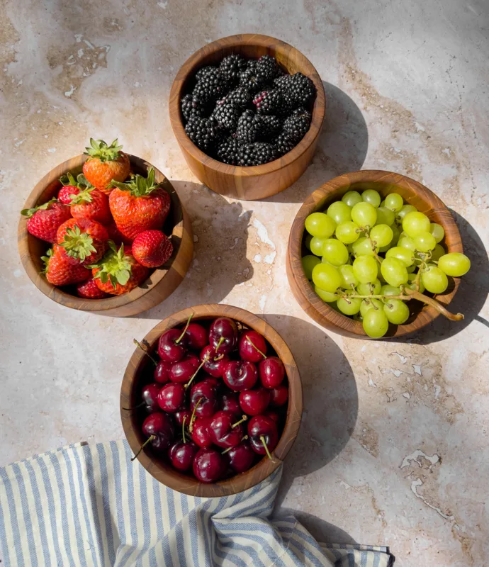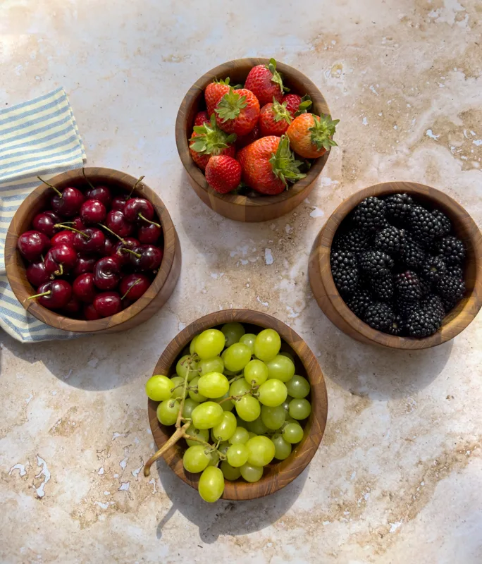 Teilen Sie eine Mahlzeit mit Freunden am Esstisch mit unserem schönen und praktischen Set aus 4 Schüsseln. Aus hochwertigem Teakholz gefertigt, sind sie nicht nur stilvolle, sondern auch langlebige Accessoires für Ihre Küche. Bereiten Sie Ihre nächste Mahlzeit stilvoll mit unseren Teakholzschüsseln zu.