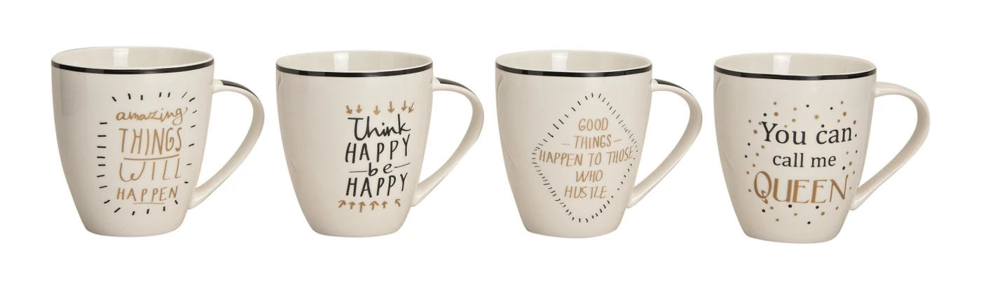 4er Set Jumbobecher mit Sprüchen 400ml, assortiert