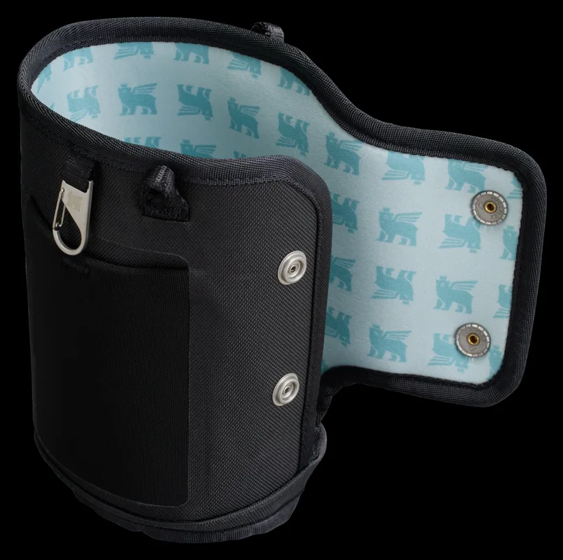 Willkommen zur freihändigen Flüssigkeitsversorgung mit Taschen! Hergestellt aus recyceltem Polyester, vereint dieses Produkt Stil und Funktionalität in einer lebendigen Farbpalette. Halten Sie den All Day 0,8 l Quencher Carry-All immer griffbereit, um Ihr Flüssigkeitsziel zu erreichen. Wickeln Sie das mit einem geflügelten Bärenmuster verzierte Band um Ihren 0,8 l Quencher und sichern Sie es mit dem doppelten Druckknopfverschluss. Hängen Sie sich den Gurt quer über den Körper, halten Sie Ihre Lieben fest und haben Sie Spass. Mit drei Taschen ist eine gross genug für Ihr Smartphone, während die zweite Tasche darunter Platz für eine schlanke Brieftasche oder eine Kartenhülle bietet. In einer kleineren Netztasche finden kompakte Kopfhörer, Lippenbalsam oder andere kleine Extras Platz, ohne die Sie nicht leben können. Das durchdachte Design umfasst eine spezielle Hülle für Ihre Sonnenbrille. Es gibt sogar einen Clip für Ihre Schlüssel! Nehmen Sie den Gurt ab und tauschen Sie die Farben mit Ihrer besten Freundin.