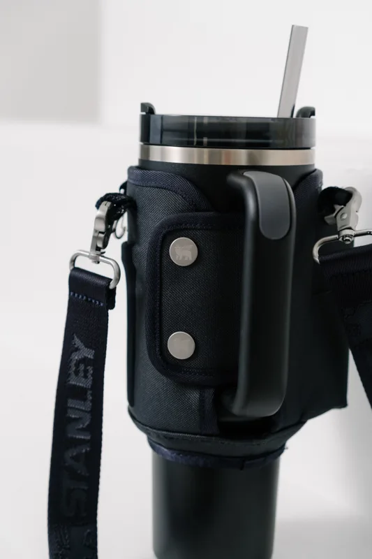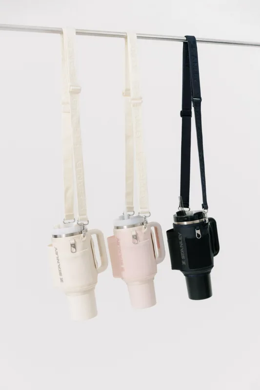 Willkommen zur freihändigen Flüssigkeitszufuhr - mit Taschen! Hergestellt aus 100 % recyceltem Polyester, trifft Stil auf Funktion in einer lebhaften Reihe von Farben. Mit dem All Day 40 oz Quencher Carry-All haben Sie Ihre Flüssigkeitszufuhr immer im Griff. Wickeln Sie das mit einem geflügelten Bärenmuster versehene Band um Ihren Quencher und schliessen Sie es mit dem doppelten Schnappverschluss. Legen Sie das Band um Ihren Körper, halten Sie sich an Ihren Lieben fest und haben Sie Spass. Die drei Taschen sind geräumig genug, um Ihr Handy zu verstauen, während in der zweiten Tasche darunter eine schmale Brieftasche oder ein Kartenetui Platz findet. Eine kleinere Netztasche bietet Platz für kompakte Kopfhörer, Lippenbalsam oder andere kleine Dinge, auf die Sie nicht verzichten können. Ein durchdachtes Design bedeutet ein spezielles Fach für Ihre Sonnenbrille. Es gibt sogar einen Clip für Ihre Schlüssel! Nimm den Riemen ab und tausche die Farben mit deiner besten Freundin. Wo auch immer du hingehst, mit Stanley kannst du dich frei bewegen und immer genug Flüssigkeit dabei haben.