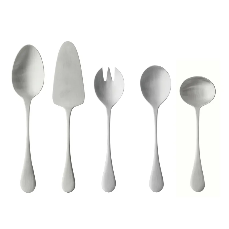 1 Servierlöffel, 1 Kuchenschaufel, 1 Saucenlöffel, 1 Salatlöffel, 1 Salatgabel
