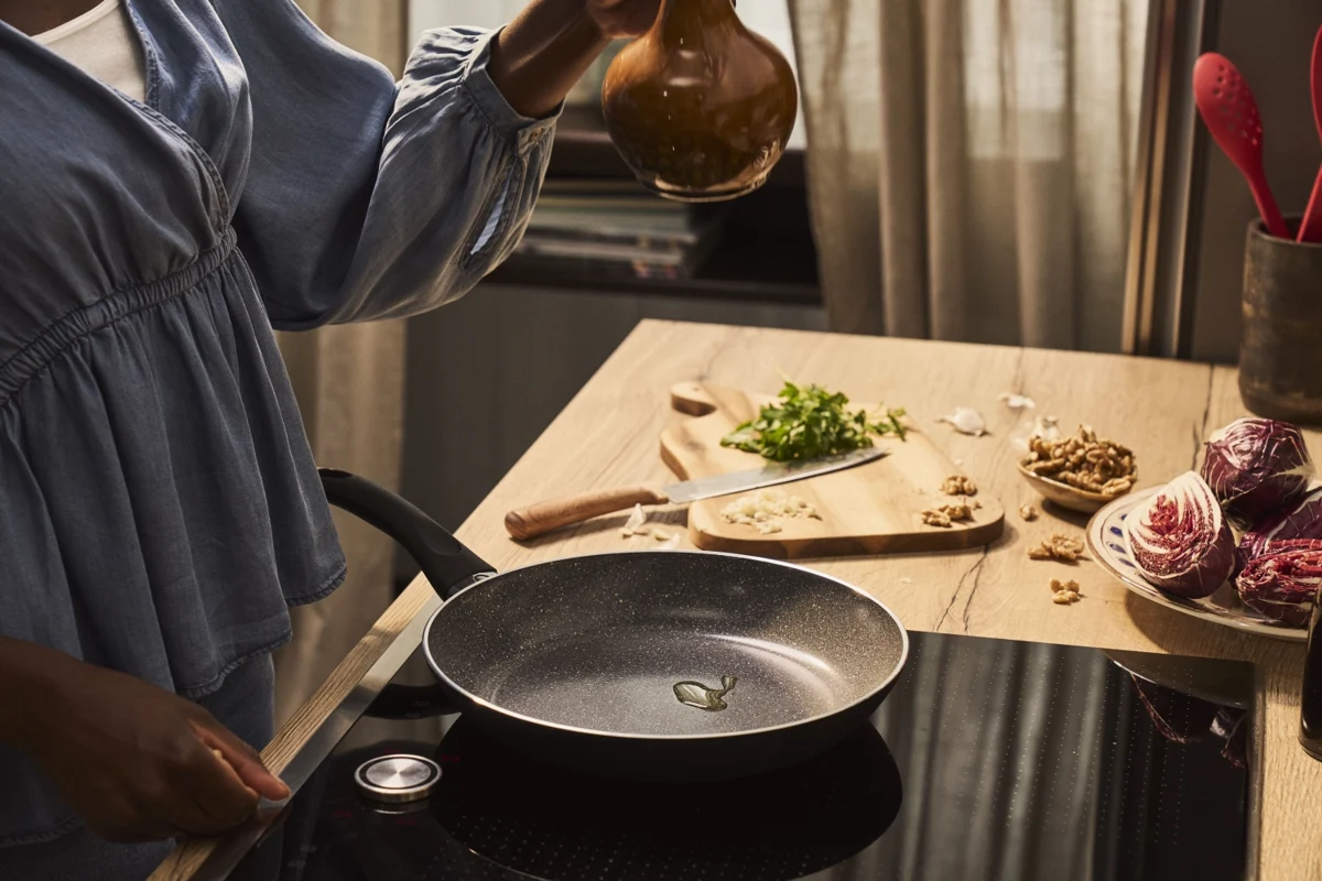 Mit etwas passione wirds perfetto: Die BALLARINI Bologna Bratpfanne aus Aluminium wurde entwickelt, um das Braten italienischer Köstlichkeiten für dich noch leichter zu machen. Das Herzstück der Pfanne ist die CERAFORCE Keramikbeschichtung, die ohne PFAS und PFOA hergestellt wird und bis zu dreimal langlebiger ist als unsere bisherigen Keramikbeschichtungen*. Sie bietet dir ausgezeichnete Antihaft-Eigenschaften für ein bewusstes Braten mit wenig Öl. Dank dem THERMOPOINT Hitzeindikator weißt du immer, wann die perfekte Brattemperatur erreicht ist. Der Radiant Induktionsboden sorgt für eine schnelle und gleichmäßige Hitzeverteilung, sodass dir leckere Gerichte für deine Liebsten mühelos gelingen.