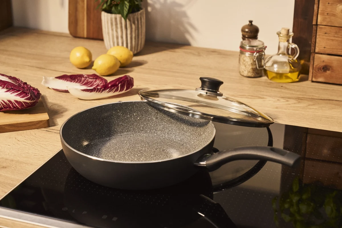 Mit etwas passione wirds perfetto: Die BALLARINI Bologna Schmorpfanne mit Glasdeckel wurde entwickelt, um das Schmoren und Braten italienischer Köstlichkeiten noch einfacher zu machen. Die CERAFORCE Keramikbeschichtung, hergestellt ohne PFAS und PFOA, ist bis zu dreimal langlebiger als unsere bisherigen Keramikbeschichtungen* und bietet dir ideale Antihaft-Eigenschaften für ein fettarmes Schmoren. Der Glasdeckel unterstützt energiesparendes Schmoren und ermöglicht dir das Sichtkochen. Mit dem THERMOPOINT Hitzeindikator weißt du immer, wann die richtige Temperatur erreicht ist, während der Radiant Induktionsboden die Hitze schnell und gleichmäßig verteilt.