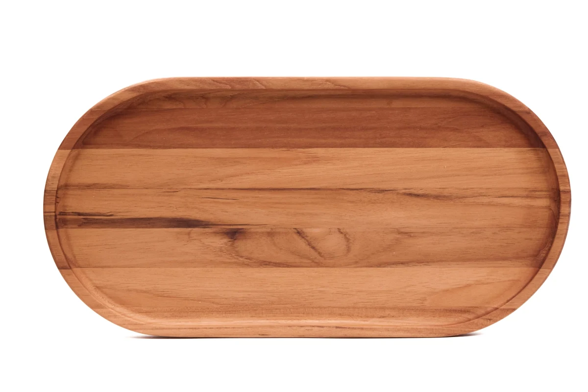 Wir stellen unser ovales Serviertablett aus Teakholz vor, das sich perfekt für das Frühstück im Bett oder als dekorative Platte auf Ihrem Tisch eignet. Seine antibakteriellen Eigenschaften machen es zu einer sicheren Wahl für Lebensmittel, und seine drei verschiedenen Größen ermöglichen die Verschachtelung und einfache Aufbewahrung. Verbessern Sie Ihr Esserlebnis mit diesem vielseitigen und stilvollen Tablett.