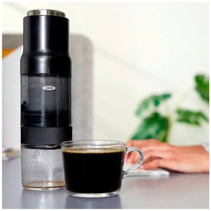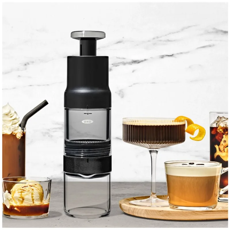 In weniger als 5 Minuten bereitet der OXO Brew Rapid Brewer 13 Portionen konzentrierten Kaffee im Espresso-Stil zu, aus dem Sie Ihre perfekte Tasse Kaffee zubereiten können. Dank seiner kompakten Größe eignet er sich hervorragend für zu Hause, am Arbeitsplatz oder auf Reisen. Sie müssen lediglich fein gemahlenen Kaffee einfüllen, den Tamper verwenden, Wasser hinzufügen und warten.