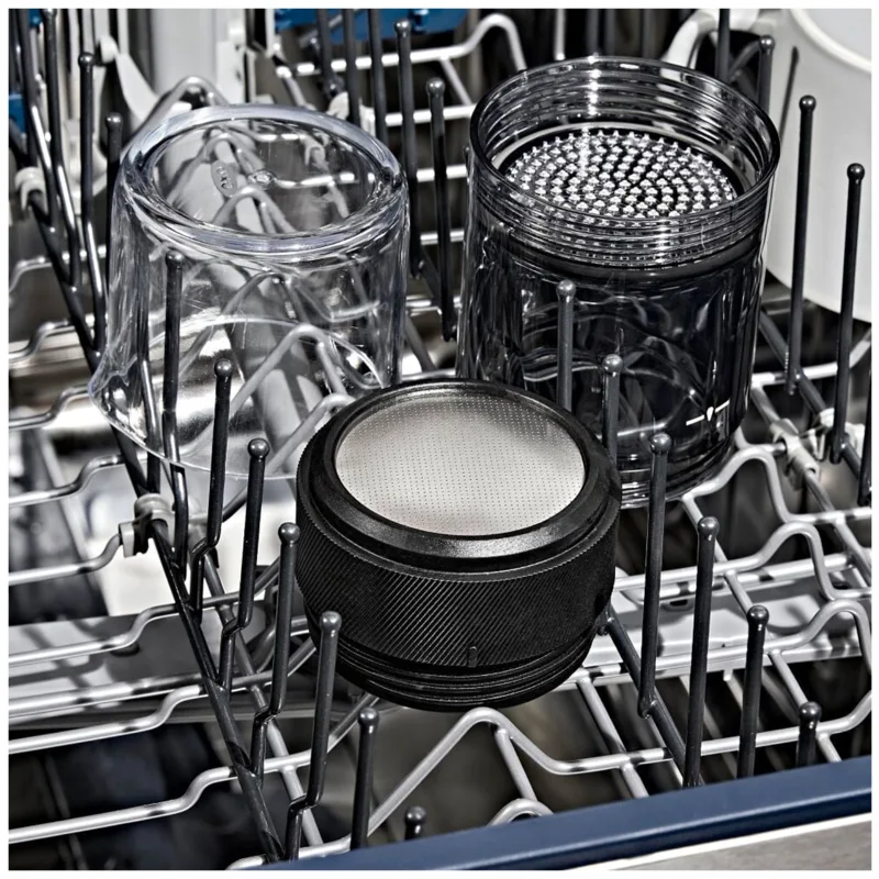 Nach 2 bis 5 Minuten drücken Sie den konzentrierten Kaffee einfach mit der Pumpe in die Karaffe. Verdünnen Sie ihn dann mit heißem oder kaltem Wasser oder Milch zu Ihrem Lieblingskaffee. Er verfügt über einen integrierten Edelstahlfilter und einen Tamper sowie einen Rainmaker-Duschkopf, der das Wasser gleichmäßig über den Kaffee gießt und so für eine ideale Extraktion sorgt. Der Wasserbehälter und die Karaffe bestehen aus Tritan Renew, das zu 50 % aus recycelten Materialien besteht, die durch einen Massenbilanzierungsprozess zertifiziert sind. Der Rapid Brewer ist leicht zu reinigen alles außer der Pumpe ist spülmaschinenfest.