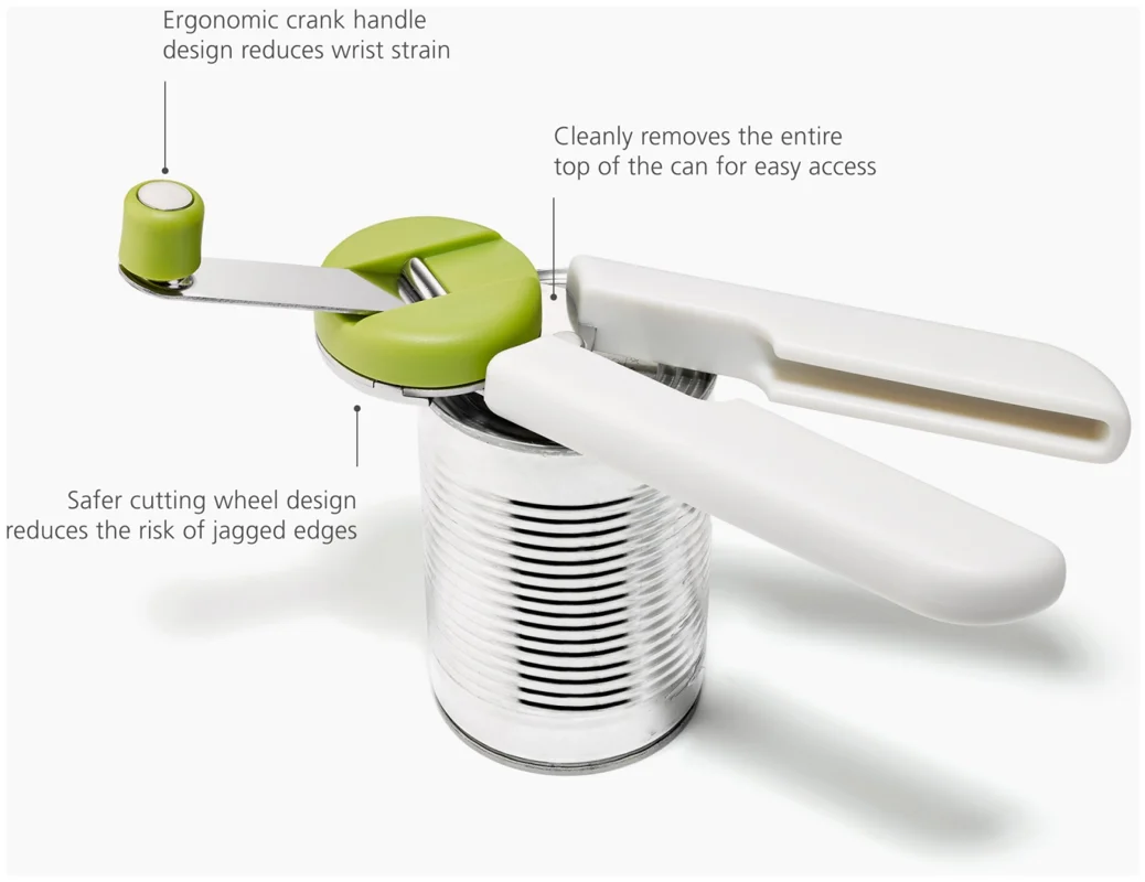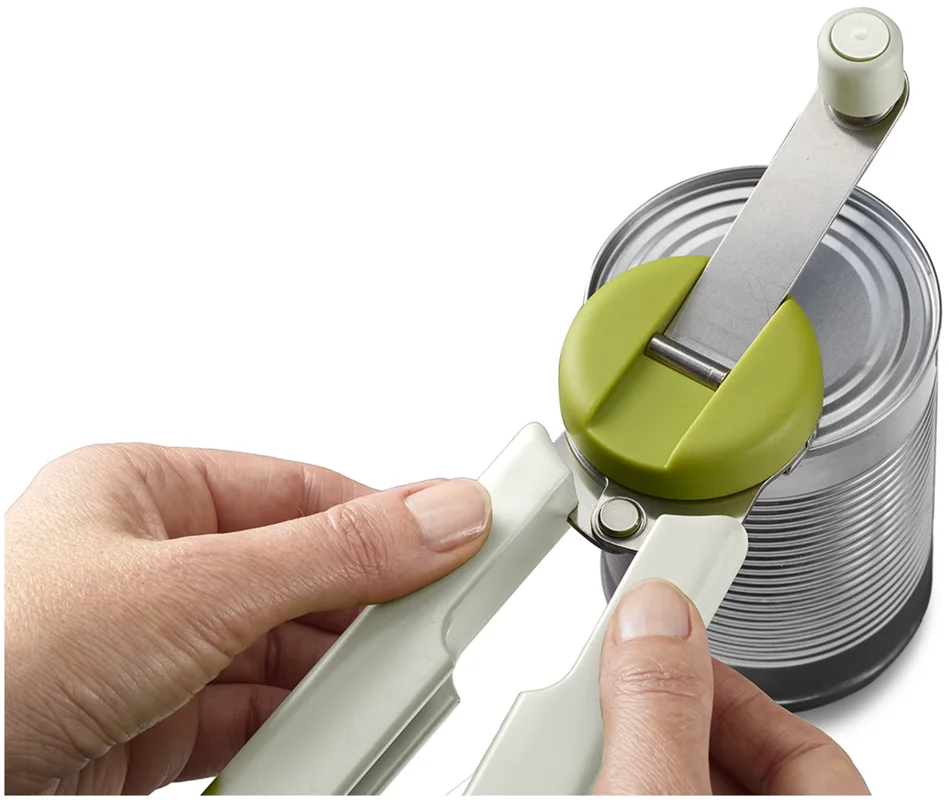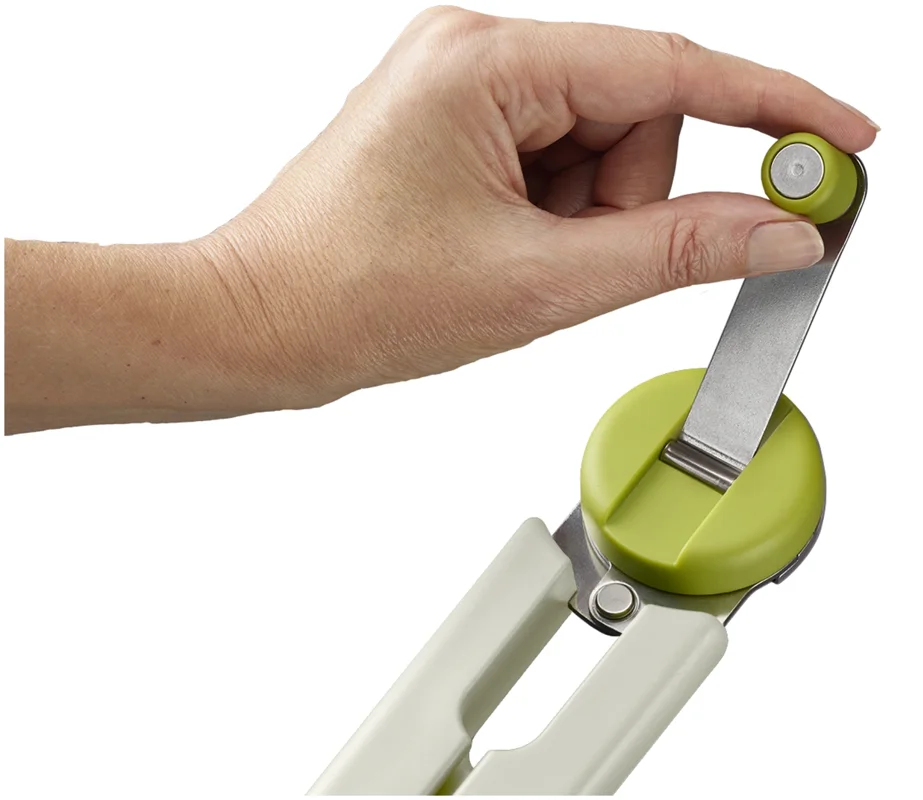 Dieser clevere Dosenöffner macht eine alltägliche Küchenaufgabe deutlich einfacher. Er entfernt mühelos den gesamten Deckel für einfaches Ausgiessen, während die robuste Kurbel und der ergonomische Griff die Handgelenke entlasten. Einfach die Kurbel anheben, die Arme öffnen und das Schneidrad an der Dosenkante befestigen. Durch Drehen der Kurbel wird der Deckel entfernt. Nach dem Gebrauch lässt sich der Griff flach einklappen, um platzsparend verstaut zu werden.