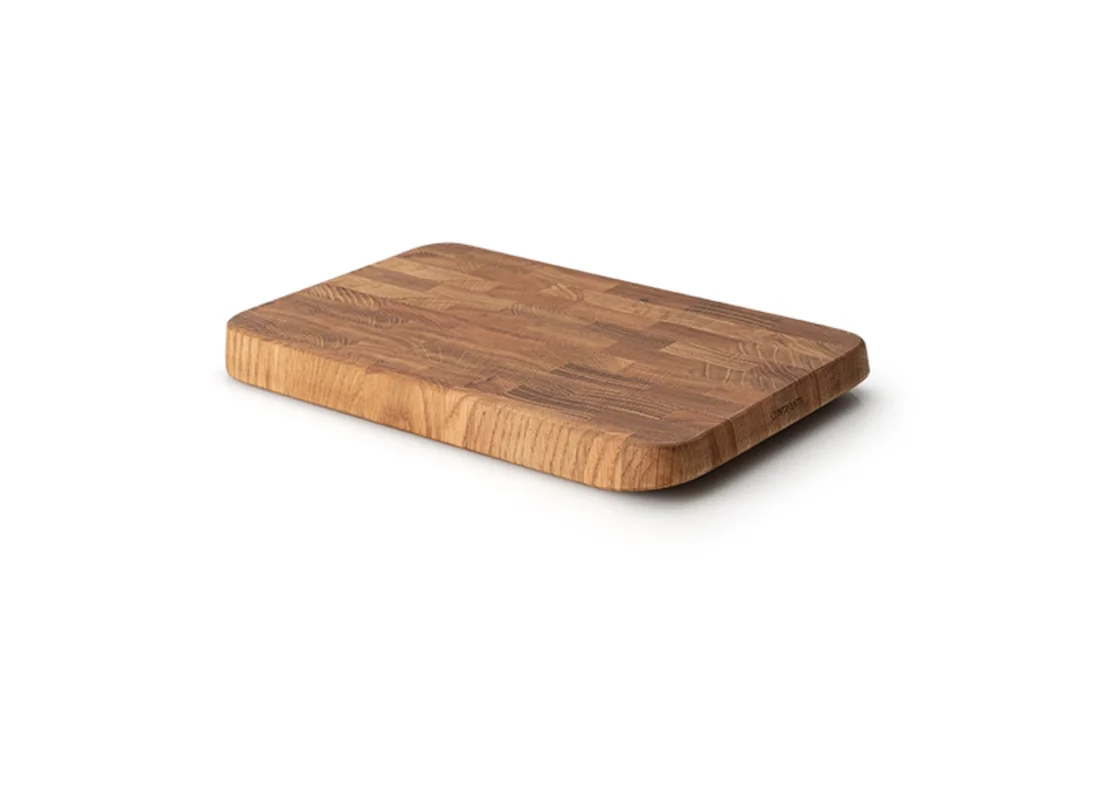 Dieses Hackbrett ist hochwertig verarbeitet aus Massivholz. Es überzeugt mit hoher Materialstärke und modernem Design. Die sanft nach oben verlaufende Schräge an der Unterseite erleichtert das Anheben und verleiht dem Brett das gewisse Etwas. Die Optik besticht durch ein reizvolles Mosaik aus einzeln verleimten Holzwürfeln. Dabei sorgen die sichtbaren Jahresringe für eine besonders widerstandsfähige Oberfläche.