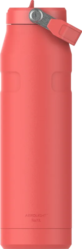 Klappen Sie den Trinkhalm auf, trinken Sie und klappen Sie ihn wieder zu. So lässt sich die Flasche problemlos in Ihre Tasche oder den Getränkehalter im Auto stecken. Die AeroLight-Isolierung aus Edelstahl hält Ihr Wasser stundenlang eisgekühlt. Zudem lässt sich der neue Trinkauslass für eine gründlichere Reinigung abnehmen.