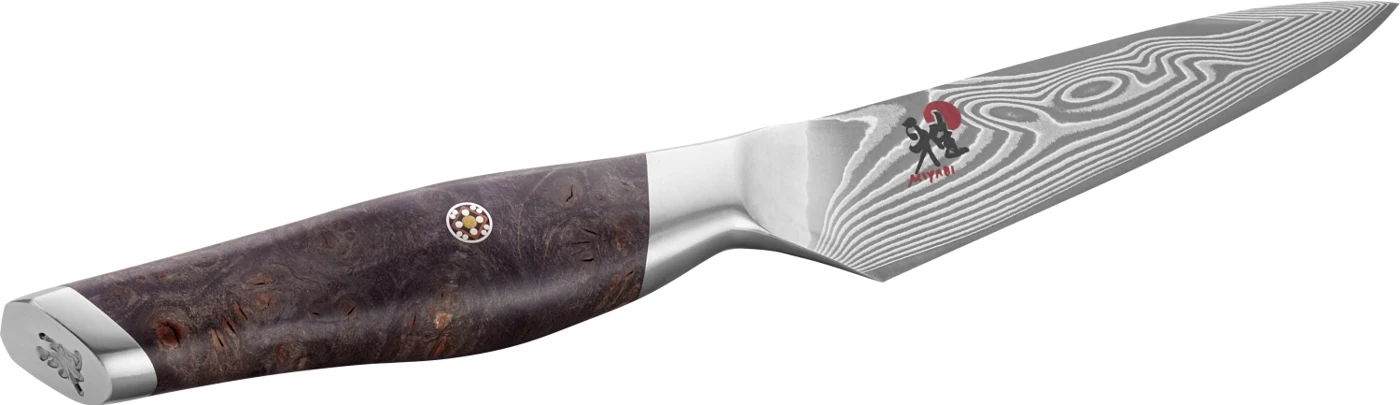 MIYABI Iki ist das Bekenntnis zu kompromissloser Perfektion in über 130 Arbeitsschritten handgefertigt von speziell ausgebildeten japanischen Meister-Handwerkern. Die 49-lagige Klinge aus ultrahartem MC66 Stahl trägt das Mondlicht-Damastmuster einem speziellen Damastmuster, exklusiv für Iki und kunstvollem Schliff. Der handgeformte Griff aus dunklem Ahornholz ist ideal ausbalanciert und optimal auf die Klinge abgestimmt. Das Spick- und Garniermesser ist dein Werkzeug für feinste Schneidarbeiten perfekt zum Spicken von Fleisch, Schälen von Obst oder filigranen Anrichten. Für alle, die keine Kompromisse machen auch nicht bei den kleinen Dingen.