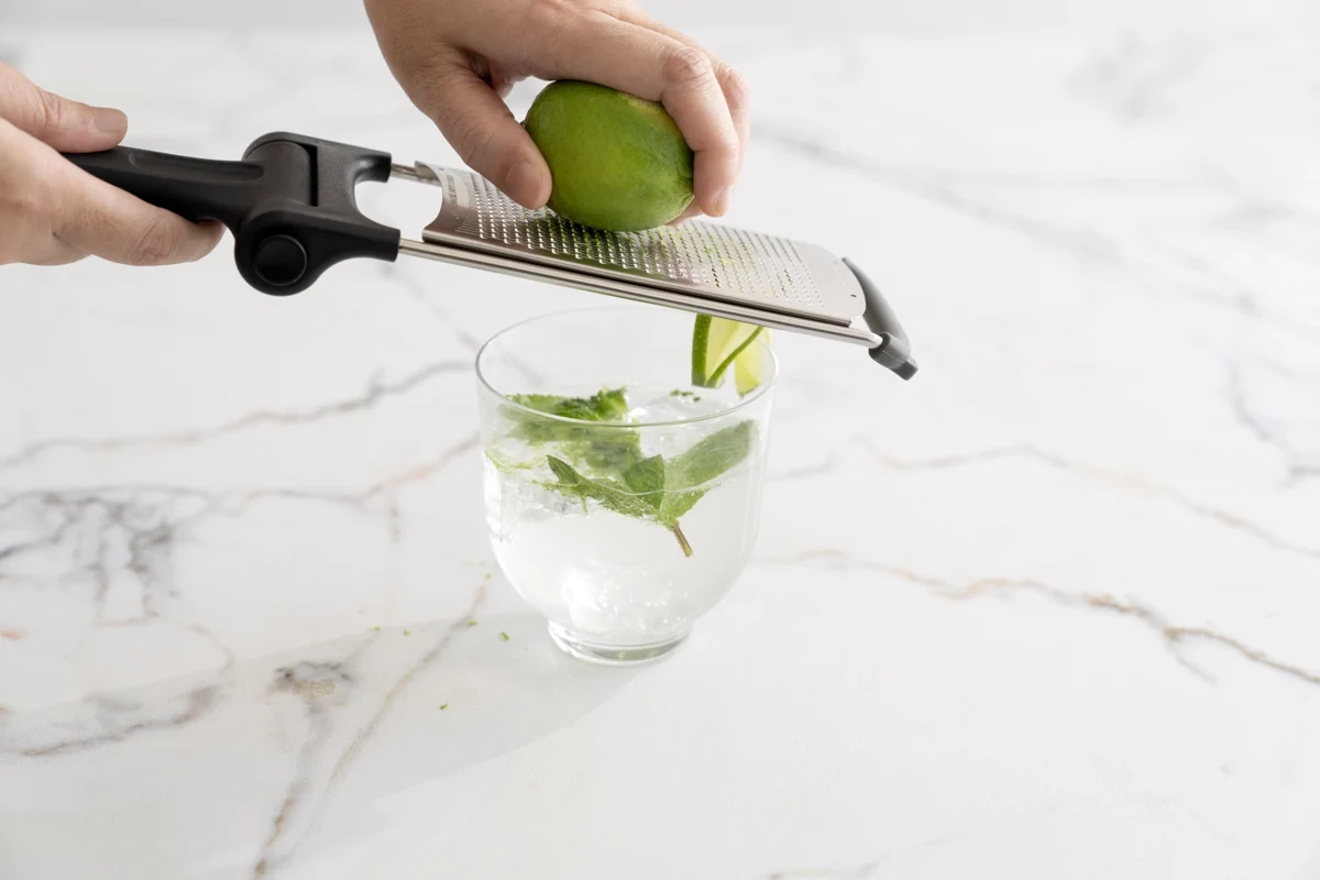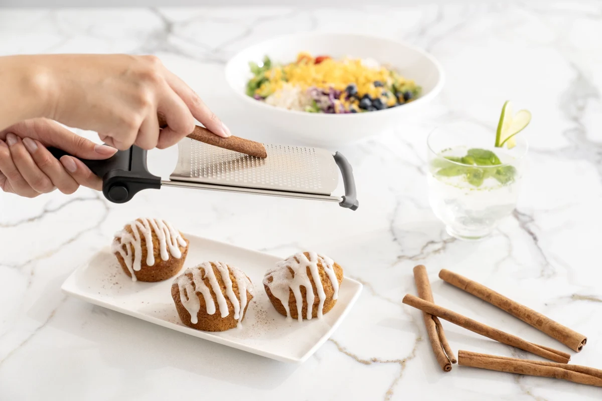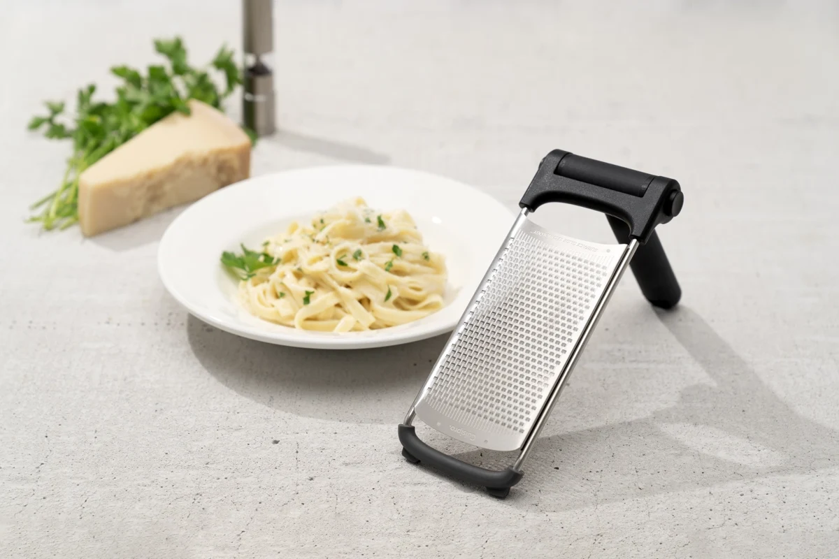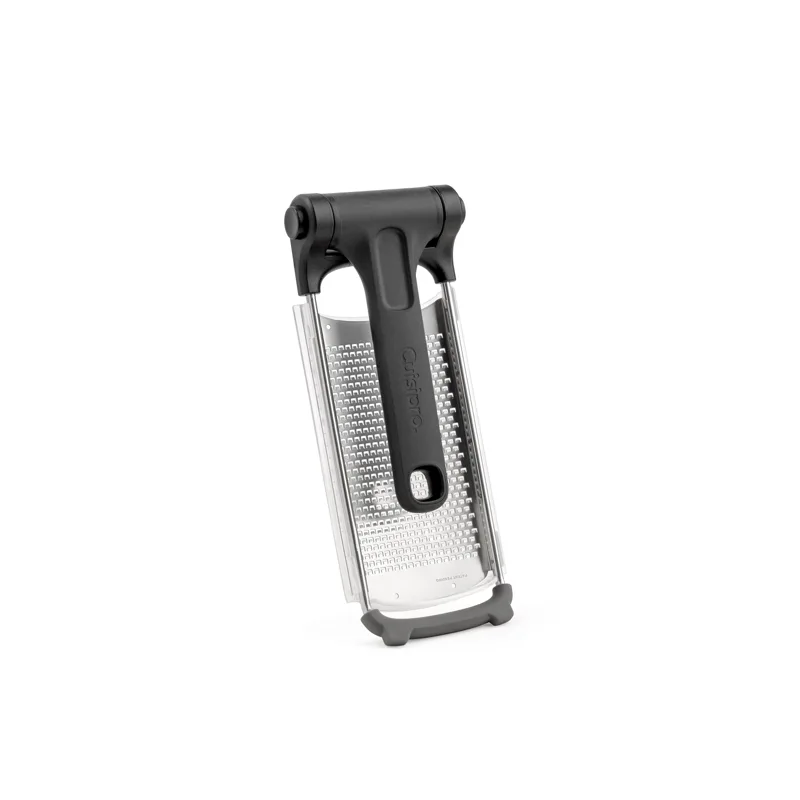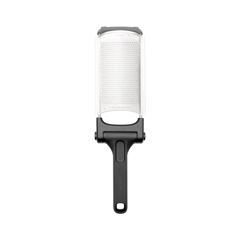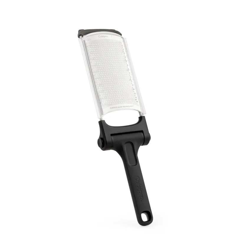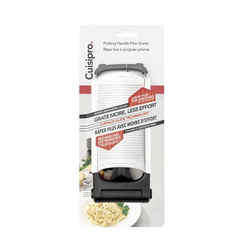Die Cuisipro-Klappreibe Fine verfügt über die Surface Glide Technology und einen Soft-Touch-Griff für eine einfache Handhabung. Die gerillte Reibefläche mit Surface Glide Technology, die exklusiv bei Cuisipro erhältlich ist, hebt Reiben mit Ätzung auf die nächste Stufe, indem sie die perfekte Balance zwischen einfacher Reibung und maximaler Effizienz schafft. Die Wissenschaft hinter dieser Technologie basiert auf dem wiederholten Rillenmuster, das gleichmäßig über die gesamte Reibefläche verteilt ist und eine größere Schneidefläche für Lebensmittel schafft, sodass Sie mit weniger Aufwand mehr reiben können.