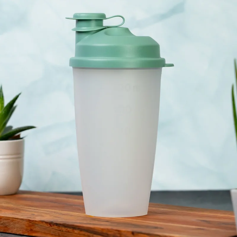 Der große Schüttelbecher gehört in jede Küche. Mit seiner herausnehmbaren Mixscheibe ist er zum klumpfreien Vermischen von Pulvern sowie zum Schaumschlagen ideal. Mit ihm lassen sich Salat-Dressings, Shakes, Soßen, Cocktails, Babynahrung und Co. schnell und einfach zubereiten, transportieren und aufbewahren. Die seitliche Messskala hilft bei der genauen Dosierung der Zutaten. Dank des fest schließenden Deckels werden diese spritzfrei gemixt und der Inhalt kann dank des Ausgießers im Deckel gezielt dosiert werden. Die Vertiefungen im Becher geben dabei eine sichere Halteposition vor. Nach dem Gebrauch kann der Helfer einfach in der Spülmaschine gereinigt und platzsparend verstaut werden.
