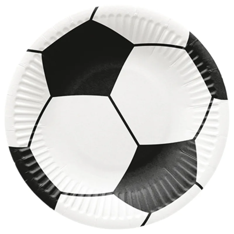 Die Pappteller mit Fußballmotiv sind die ideale Ergänzung für jede Fußballparty! Perfekt für Snacks, Fingerfood und vieles mehr, bringen sie eine spielerische Note auf den Tisch.