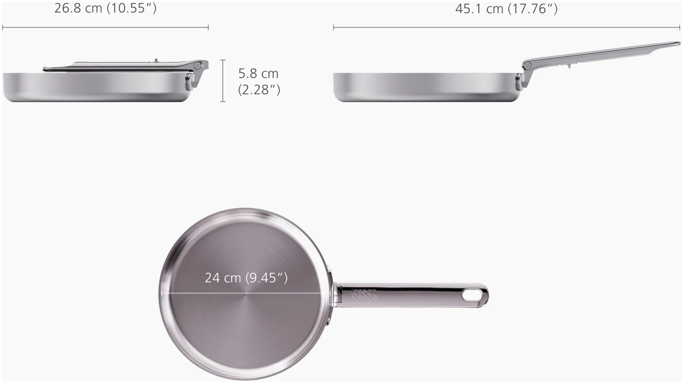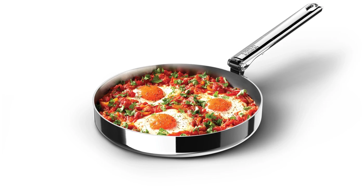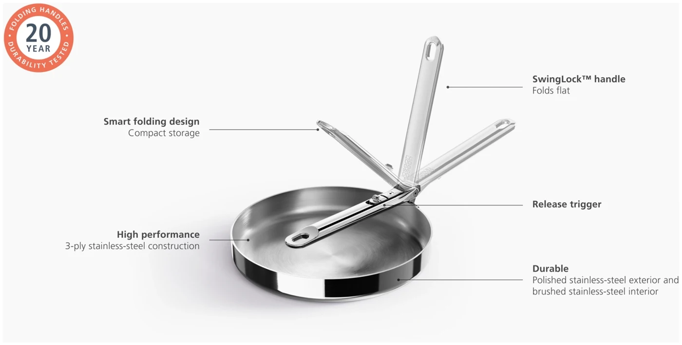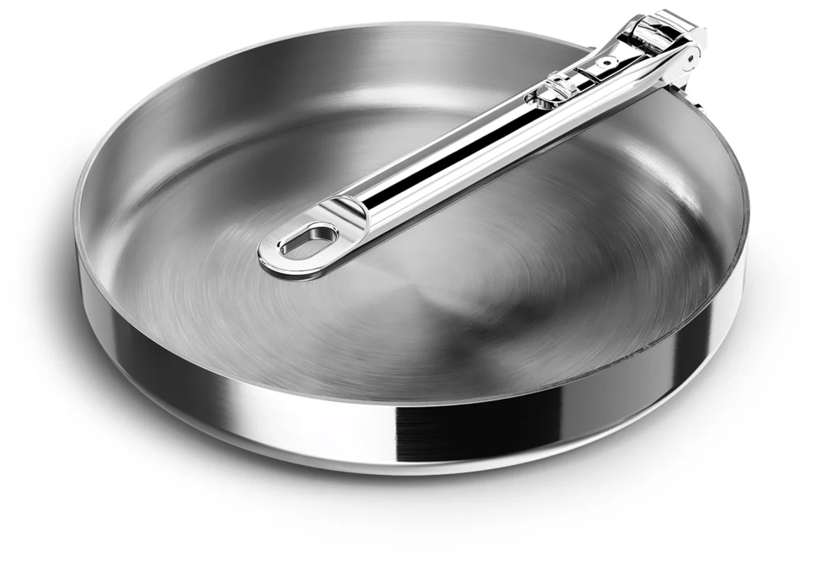 Verabschieden Sie sich von Unordnung und begrüssen Sie mehr Platz. Diese 24 cm grosse Bratpfanne verfügt über einen praktischen, klappbaren Edelstahlgriff, der im Vergleich zu einer Standardpfanne bis zu 50 % Platz bei der Aufbewahrung einspart. Der Griff ist auf Langlebigkeit ausgelegt und verfügt über unseren patentierten und ausfallsicheren SwingLock-Mechanismus, der den Griff während des Gebrauchs sicher in Position hält und im zusammengeklappten Zustand Platz spart. Auch in Bezug auf die Kochleistung gibt es keine Kompromisse. Die Pfanne verfügt über eine leistungsstarke 3-Lagen-Konstruktion, darunter einen gleichmässig wärmeleitenden Aluminiumkern, der zwischen zwei Edelstahlschichten eingebettet ist und für eine optimale Wärmeverteilung sorgt. Diese Pfanne ist für alle Herdarten geeignet, einschliesslich Induktion, und gehört zur Space-Kochgeschirrserie entwickelt für Köche, gemacht für die Aufbewahrung.