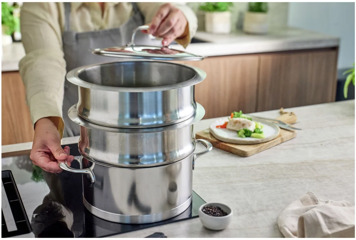 Mit dem Demeyere Specialties 5 24 cm Dampfgareinsatz dämpfen Sie im Handumdrehen knackiges Gemüse wie Brokkoli, Karotten oder Zuckerschoten oder bereiten perfekt gegarte Fischfilets mit Zitrone und Kräutern zu. Dieser vielseitige Einsatz macht das Dämpfen nicht nur einfacher, sondern auch gesünder: Der volle Geschmack bleibt erhalten, Farbe, Vitamine und Mineralstoffe werden optimal bewahrt. Außerdem kochen Sie fettärmer und sparen Energie.