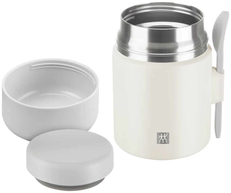 Der ZWILLING THERMO PLUS Speisebehälter in elegantem Creme-Weiß ist dein verlässlicher Begleiter für warme Mahlzeiten ob in der Mittagspause im Büro, beim Spaziergang im Park oder auf dem nächsten Outdoor-Abenteuer. Mit einem großzügigen Fassungsvermögen von 600 ml hält er deine Lieblingsgerichte bis zu 10 Stunden warm perfekt für Suppen, Eintöpfe oder Pasta. Auch kalte Speisen wie z.B. Joghurt bleiben bis zu 10 Stunden angenehm kühl. Mit auslaufsicherem Deckel und einem rutschfesten Boden, der für sicheres, leises Abstellen sorgt. Leicht, spülmaschinengeeignet und entworfen von Matteo Thun & Antonio Rodriguez für genussvolle Mahlzeiten, wo immer du gerade bist.