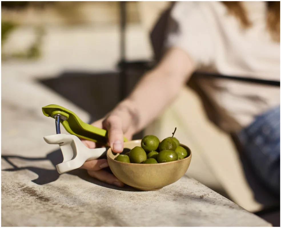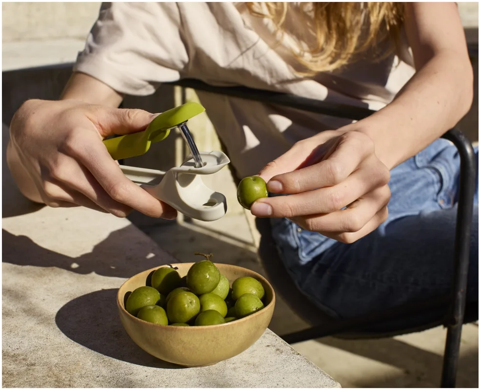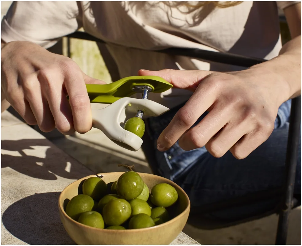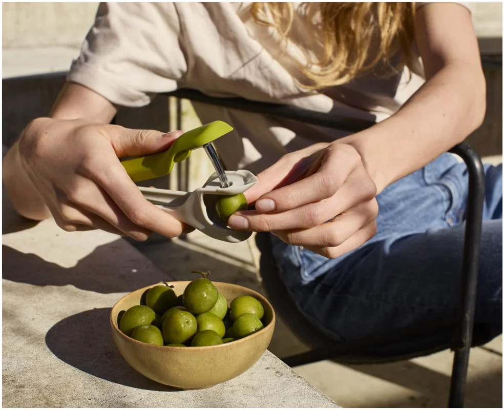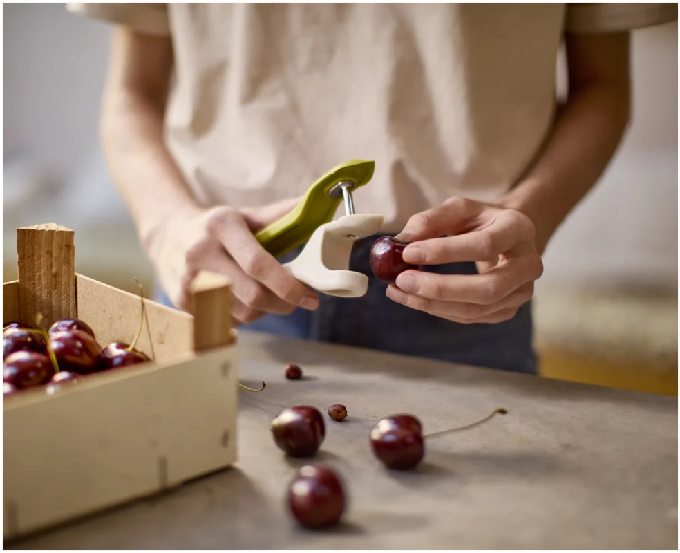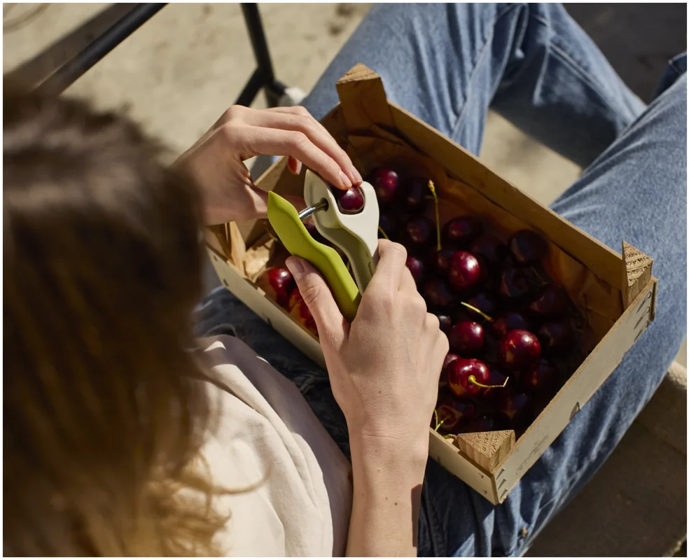 Das Vorbereiten von Früchten kann knifflig sein, besonders beim Entstielen von Erdbeeren oder Entsteinen von Kirschen mit scharfen Messern. Dieses 2-in-1-Werkzeug bietet eine sichere und effiziente Lösung, die diese Aufgaben schneller und sauberer macht. Es verfügt über ein robustes Entstein-Werkzeug und eine pinzettenartige Vorrichtung zum Entfernen von Stielen und Strünken auch für einige Oliven geeignet. Beide Werkzeuge sind sicher und einfach zu bedienen und lassen sich anschliessend leicht reinigen.